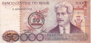 C178 – CÉDULA 50 CRUZADOS C/C EM 50.000 CRUZEIROS 1986 – BANCO CENTRAL DO BRASIL – CMB – Soberba