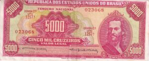 C 109 – CÉDULA 5000 CRUZEIROS 1964 – TESOURO NACIONAL – 2ª Estampa (TLR) – Soberba