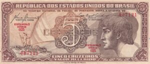 C 112 -CÉDULA 5 CRUZEIROS 1962 – TESOURO NACIONAL – 3ª Estampa (CMB) – FE