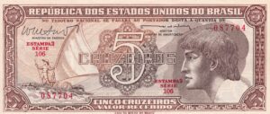 C 111 – CÉDULA 5 CRUZEIROS 1961 – TESOURO NACIONAL – 3ª Estampa (CMB) – Soberba
