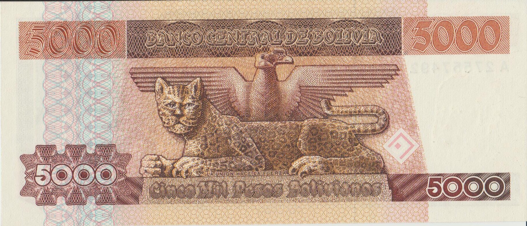 P 168 – Bolívia – 5000 Cinco Mil Pesos – 1984 – FE