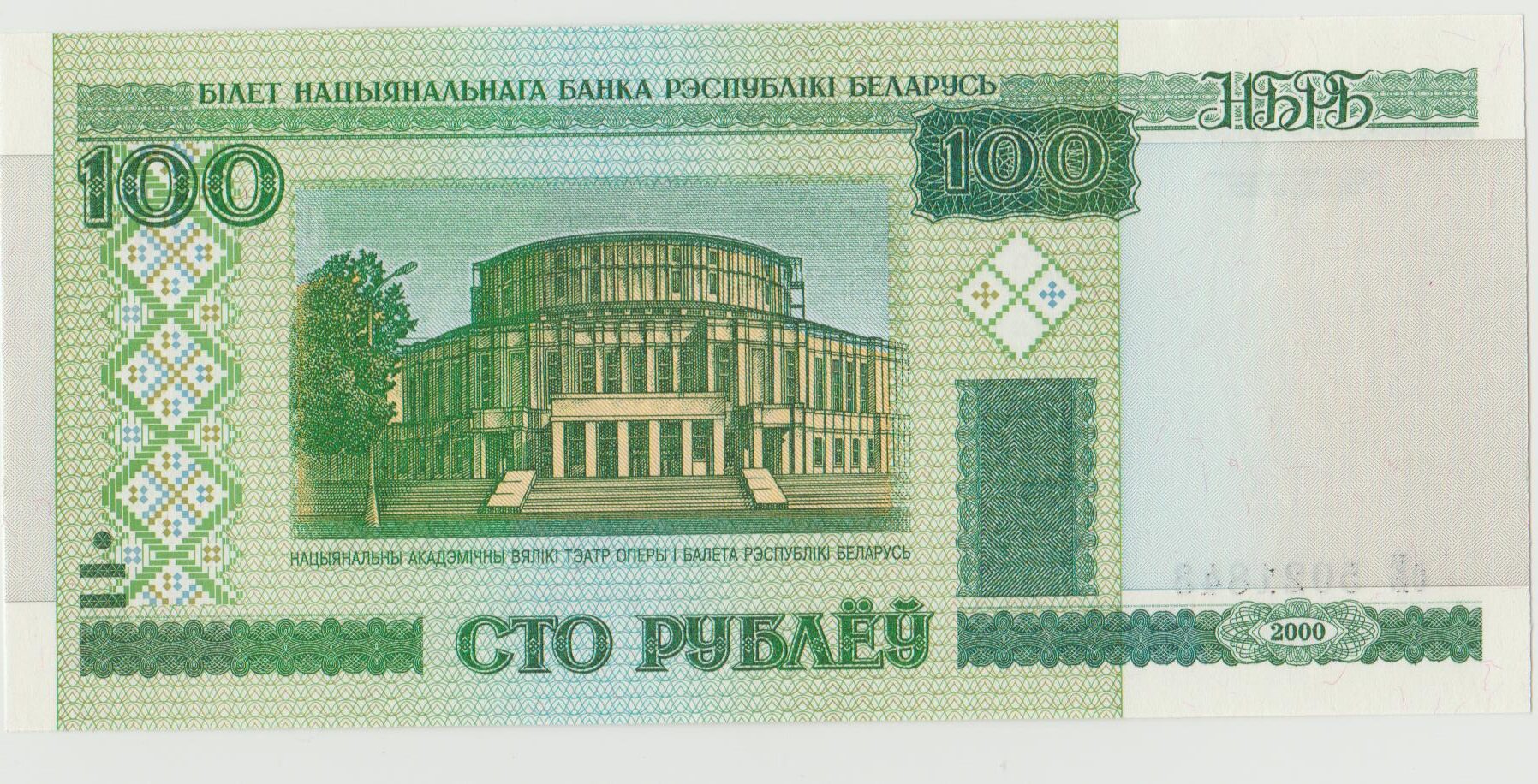 P 26- Bielorrússia – 100 Roubles – 2000 – FE