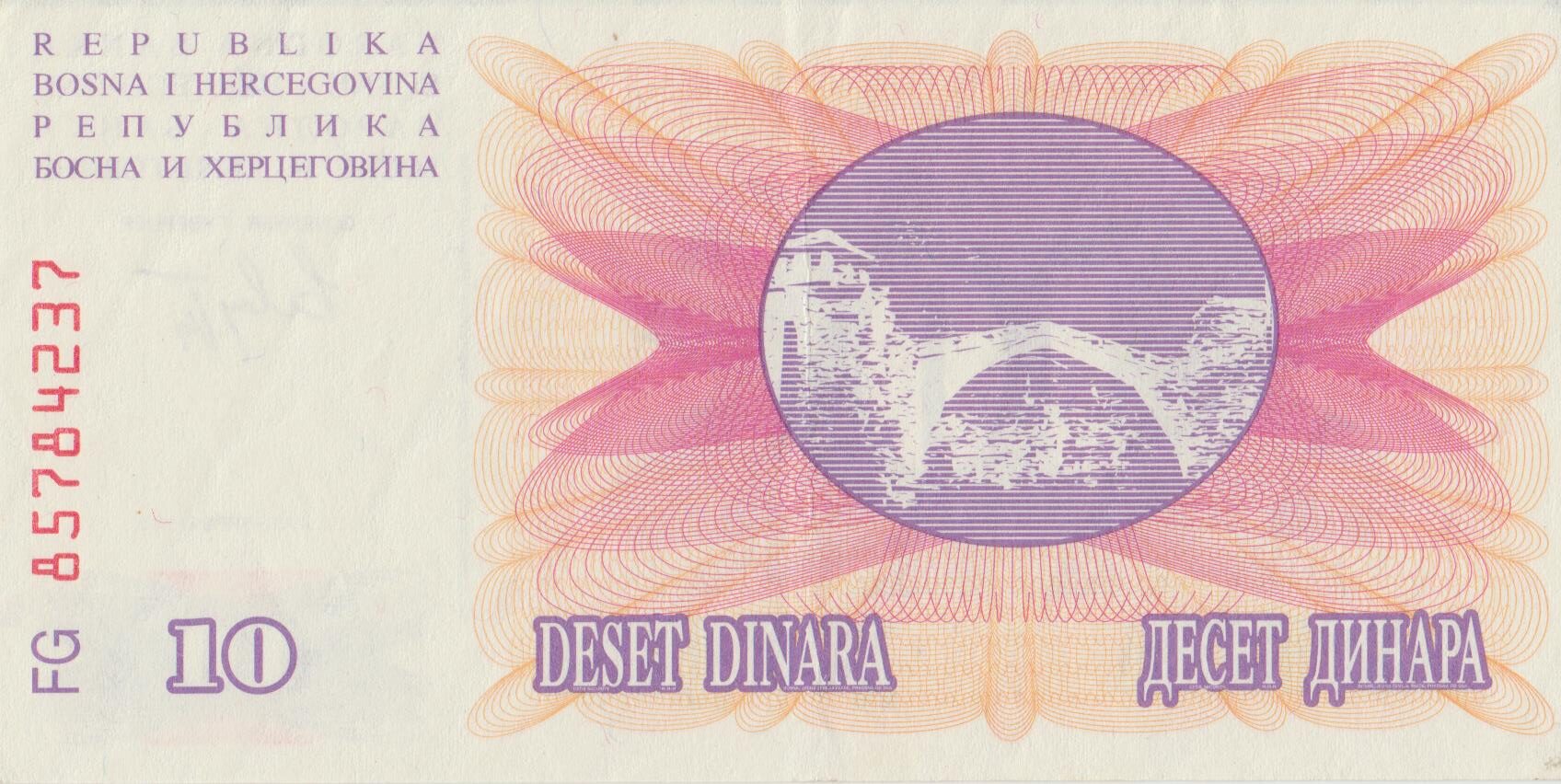 P 10 – Bósnia e Herzegovina – 10 Dinara – 1992 – FE
