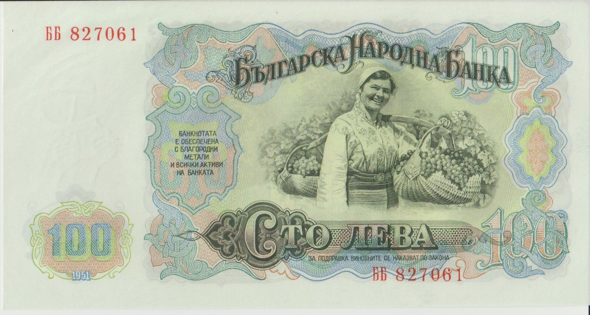 P 86 – Bulgária – 100 Leva – 1951 – FE