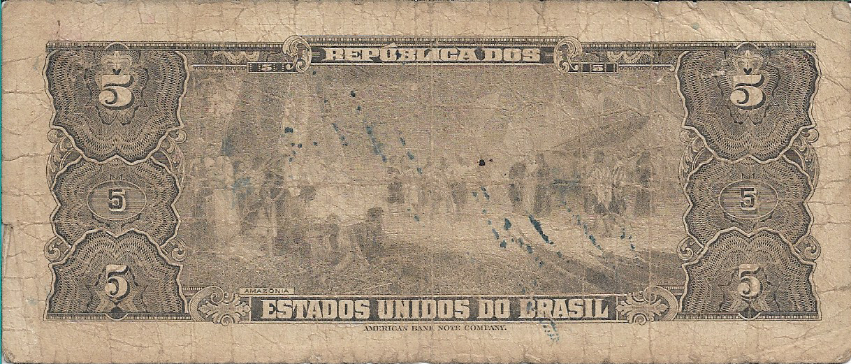 CÉDULA 5 CRUZEIRO 1943 -TESOURO NACIONAL – 1ª Estampa (ABN) – MBC