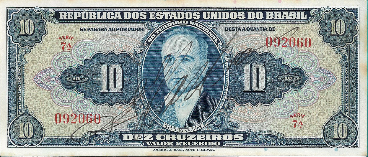 CÉDULA 10 CRUZEIRO 1943 -TESOURO NACIONAL – 1ª Estampa (ABN) – Soberba
