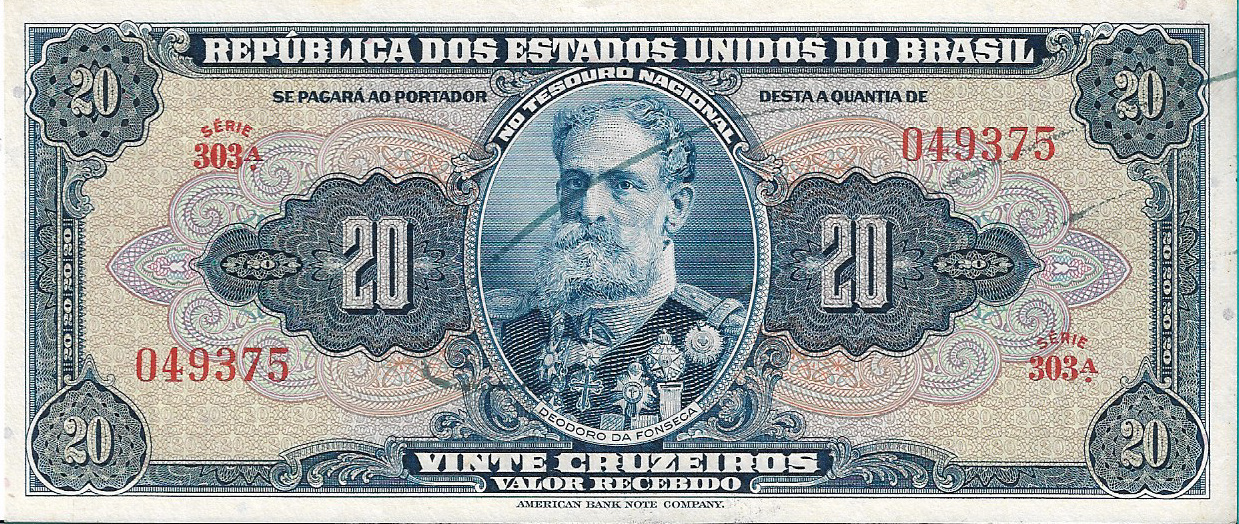 CÉDULA 20 CRUZEIRO 1943 – TESOURO NACIONAL – 1ª Estampa (ABN) – Soberba