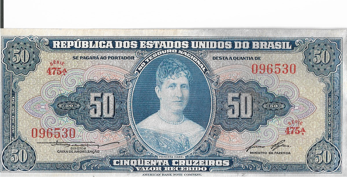 CÉDULA 50 CRUZEIROS 1956 – TESOURO NACIONAL – 1ª Estampa (ABN) – Soberba
