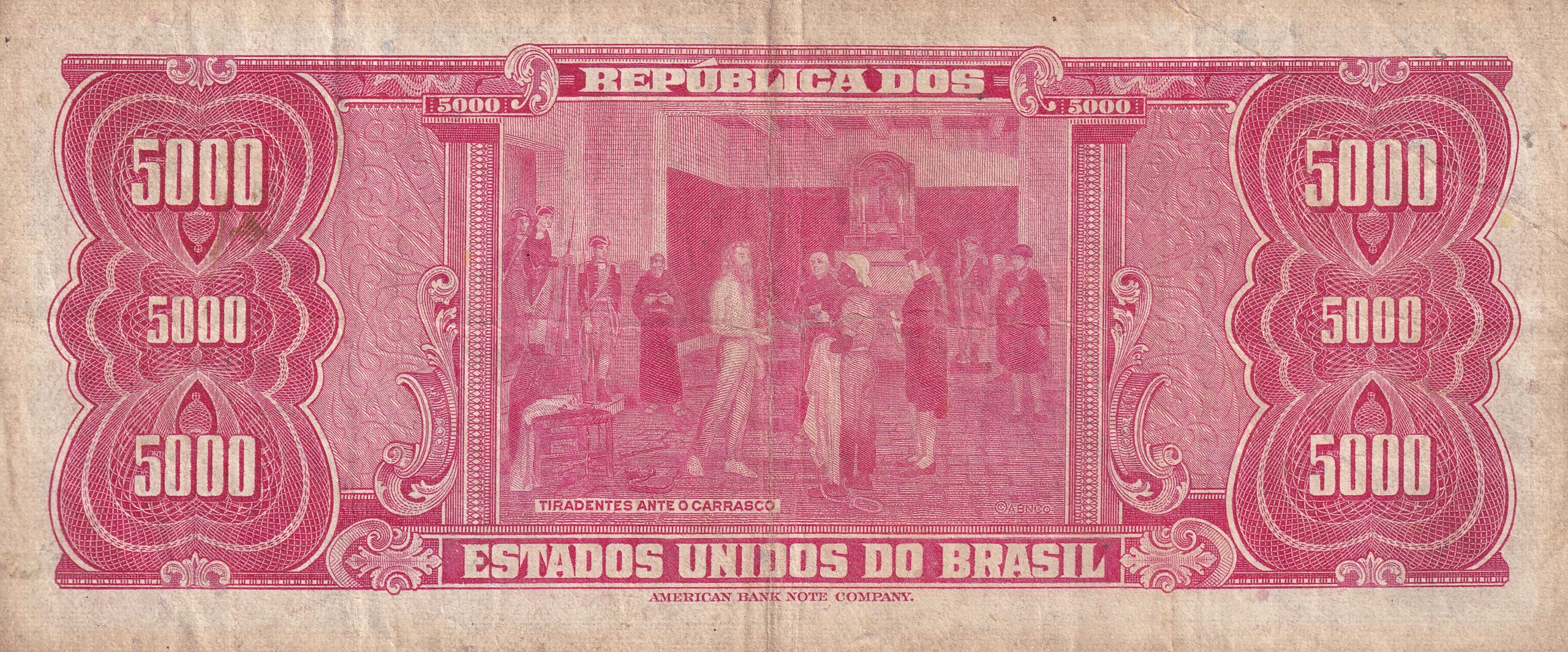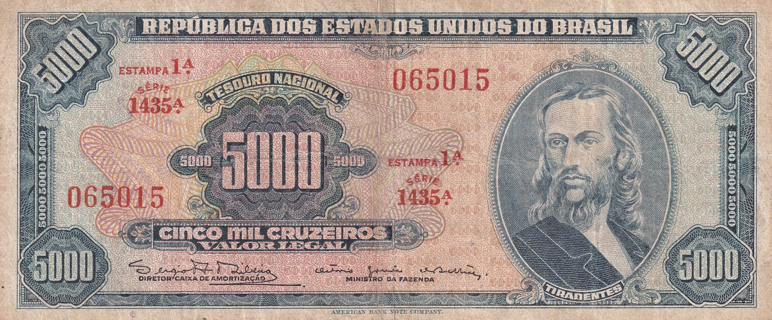 CÉDULA 5000 CRUZEIROS 1964 – TESOURO NACIONAL – 1ª Estampa (ABN) – MBC