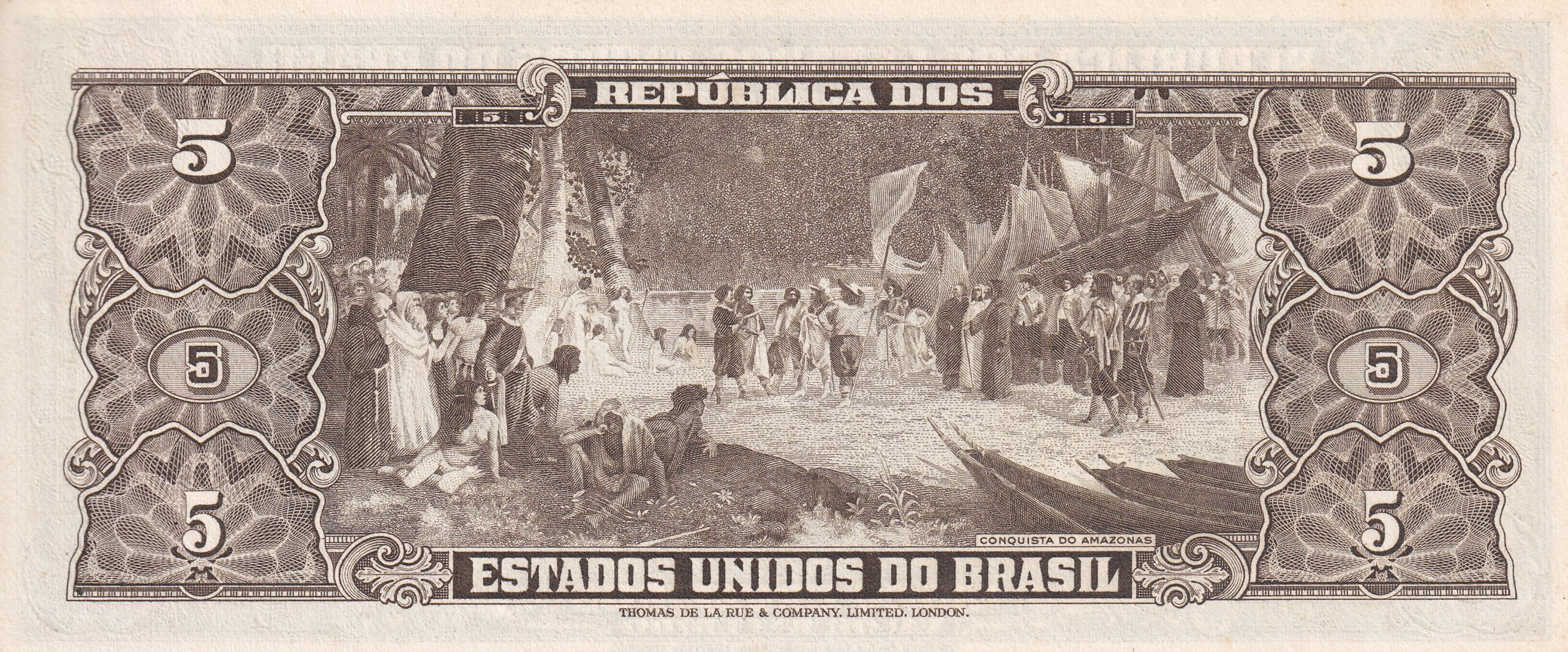 CÉDULA 5 CRUZEIROS 1956 – TESOURO NACIONAL – 2ª Estampa (TLR) – FE