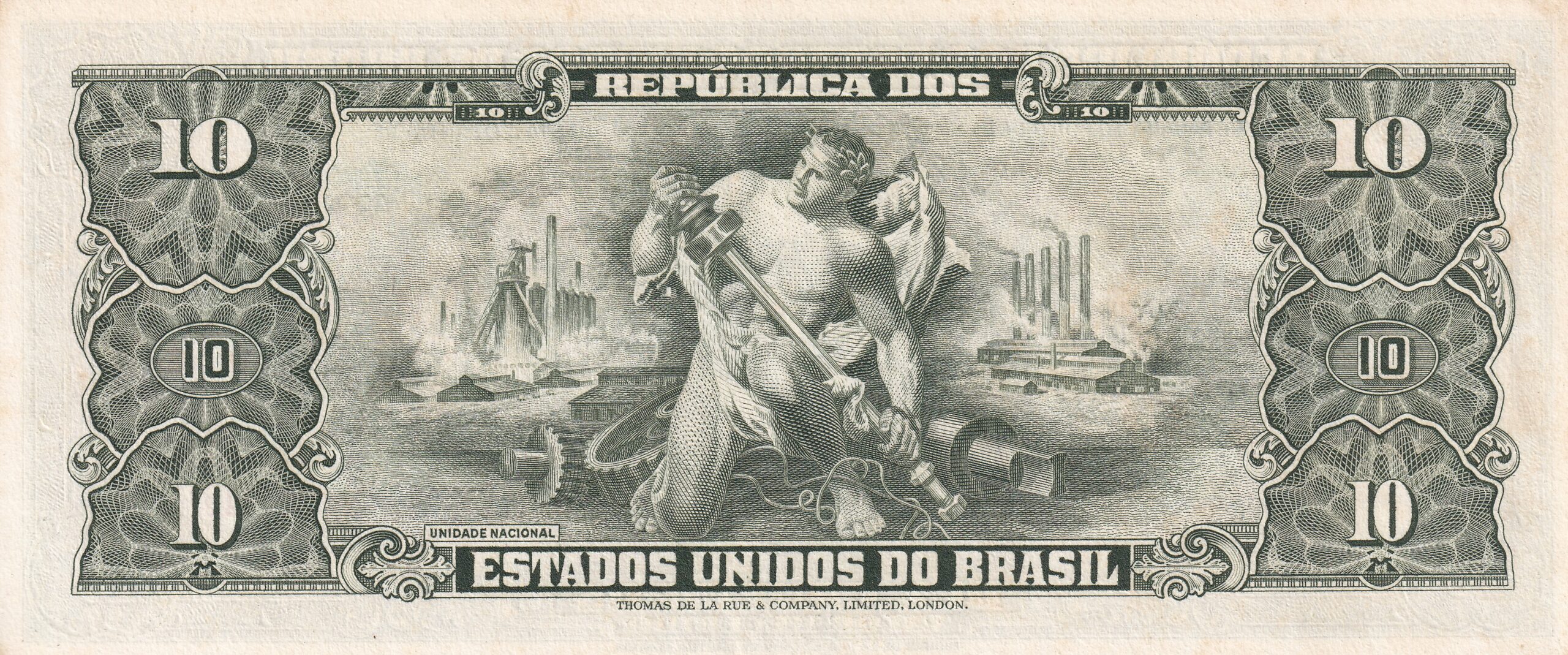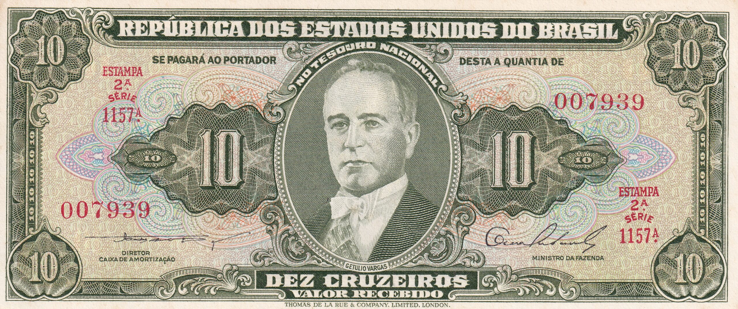 CÉDULA 10 CRUZEIROS 1954 – TESOURO NACIONAL – 2ª Estampa (TLR) – FE