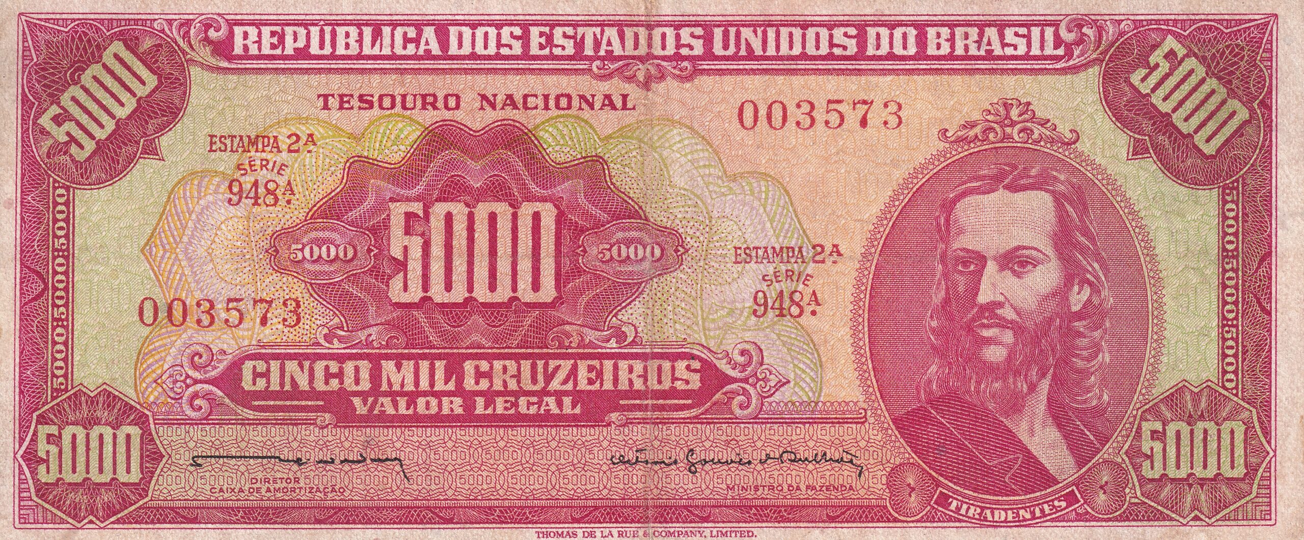CÉDULA 5000 CRUZEIROS 1964 – TESOURO NACIONAL – 2ª Estampa (TLR) – Soberba