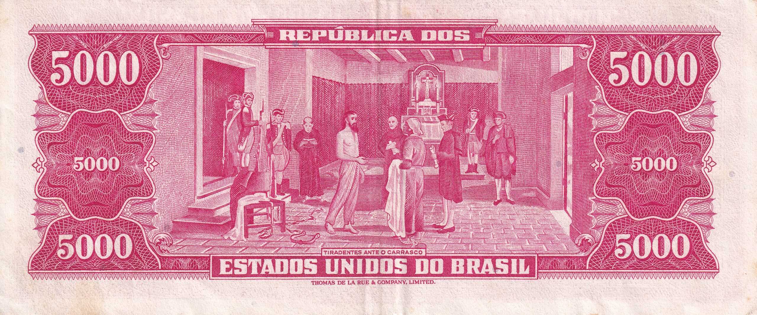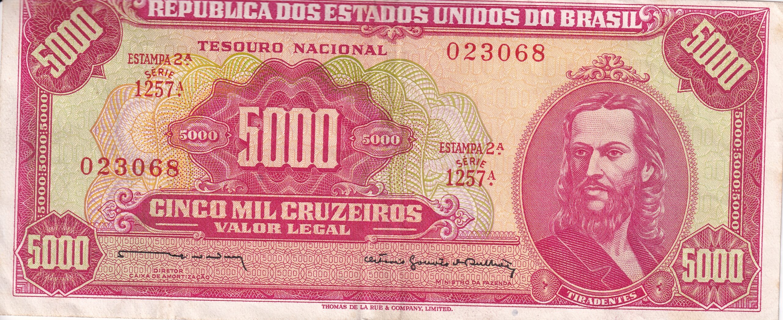 CÉDULA 5000 CRUZEIROS 1964 – TESOURO NACIONAL – 2ª Estampa (TLR) – Soberba