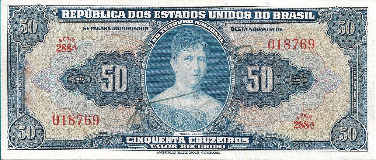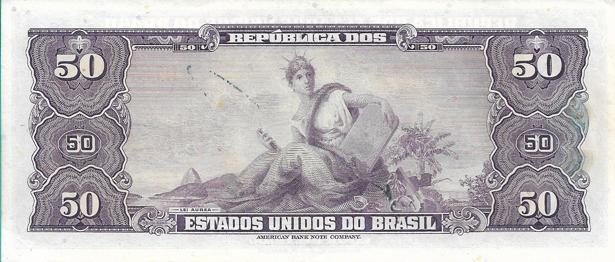 CÉDULA 50 CRUZEIROS 1943 – TESOURO NACIONAL – 1ª Estampa (ABN) – S/FE