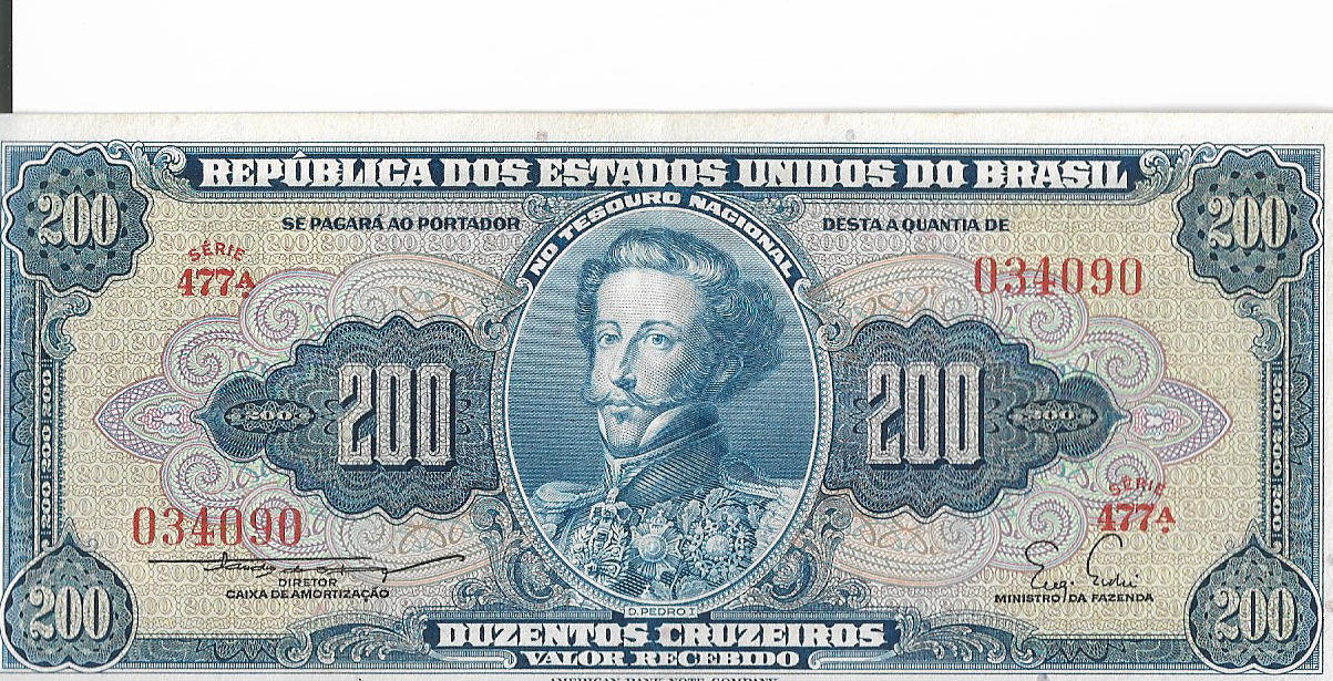 CÉDULA 200 CRUZEIROS 1955 – TESOURO NACIONAL – 1ª Estampa (ABN) – Soberba