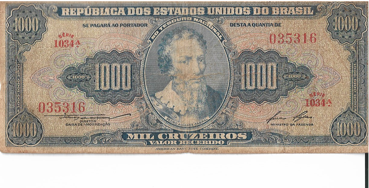 CÉDULA 1000 CRUZEIROS 1958 – TESOURO NACIONAL – 1ª Estampa (ABN) – MBC