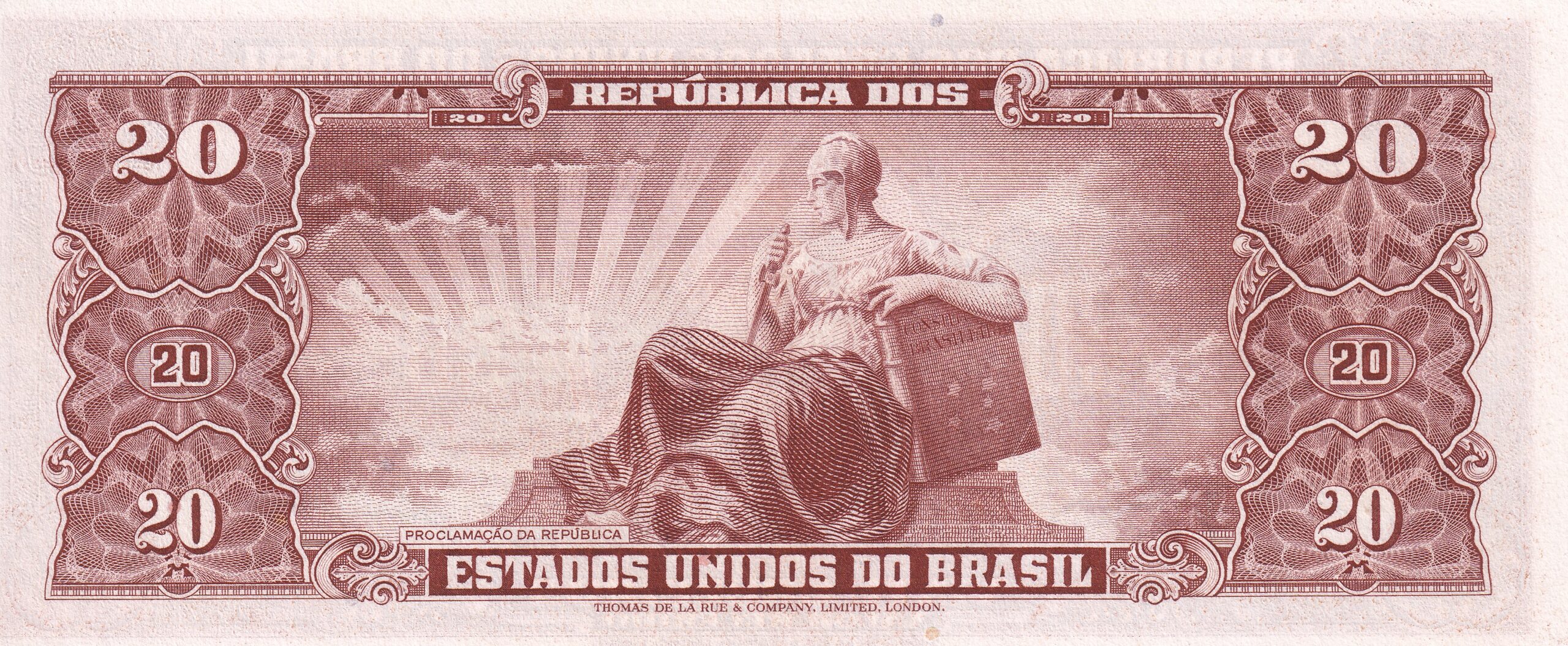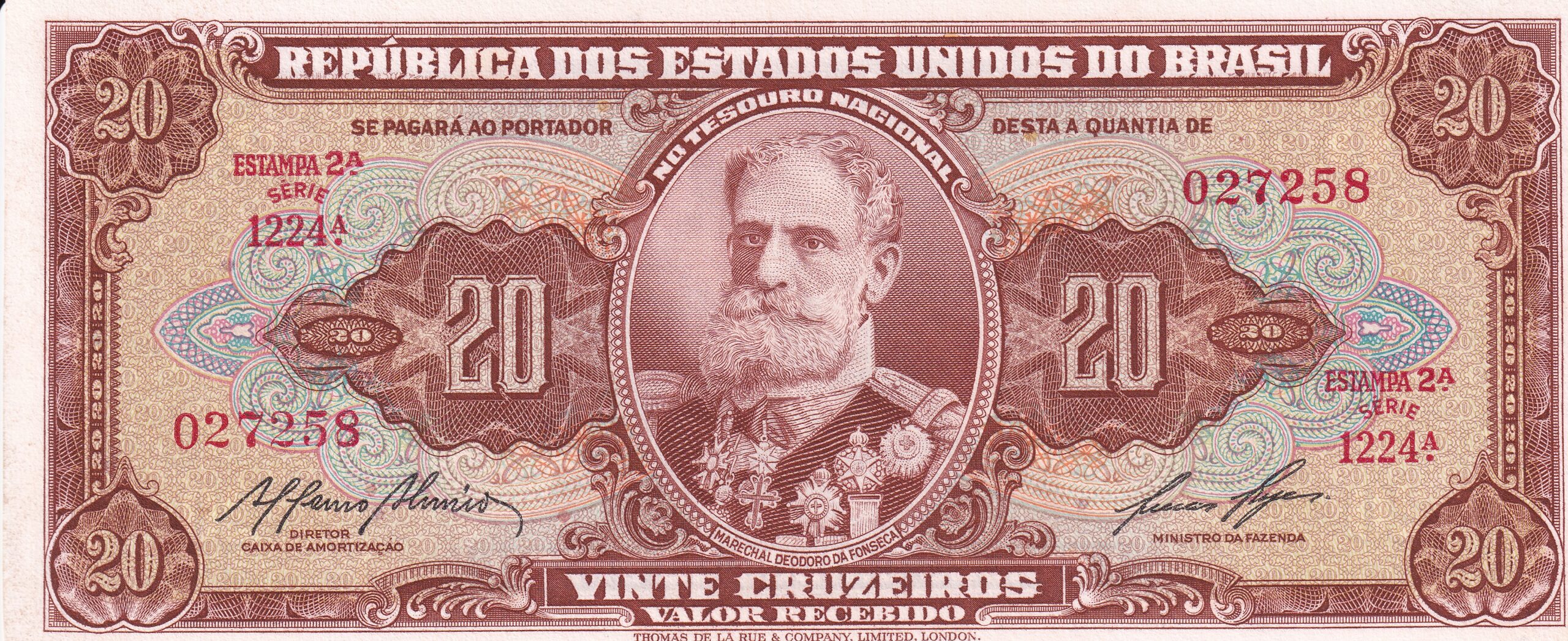 CÉDULA 20 CRUZEIROS 1959 – TESOURO NACIONAL – 2ª Estampa (TLR) – FE