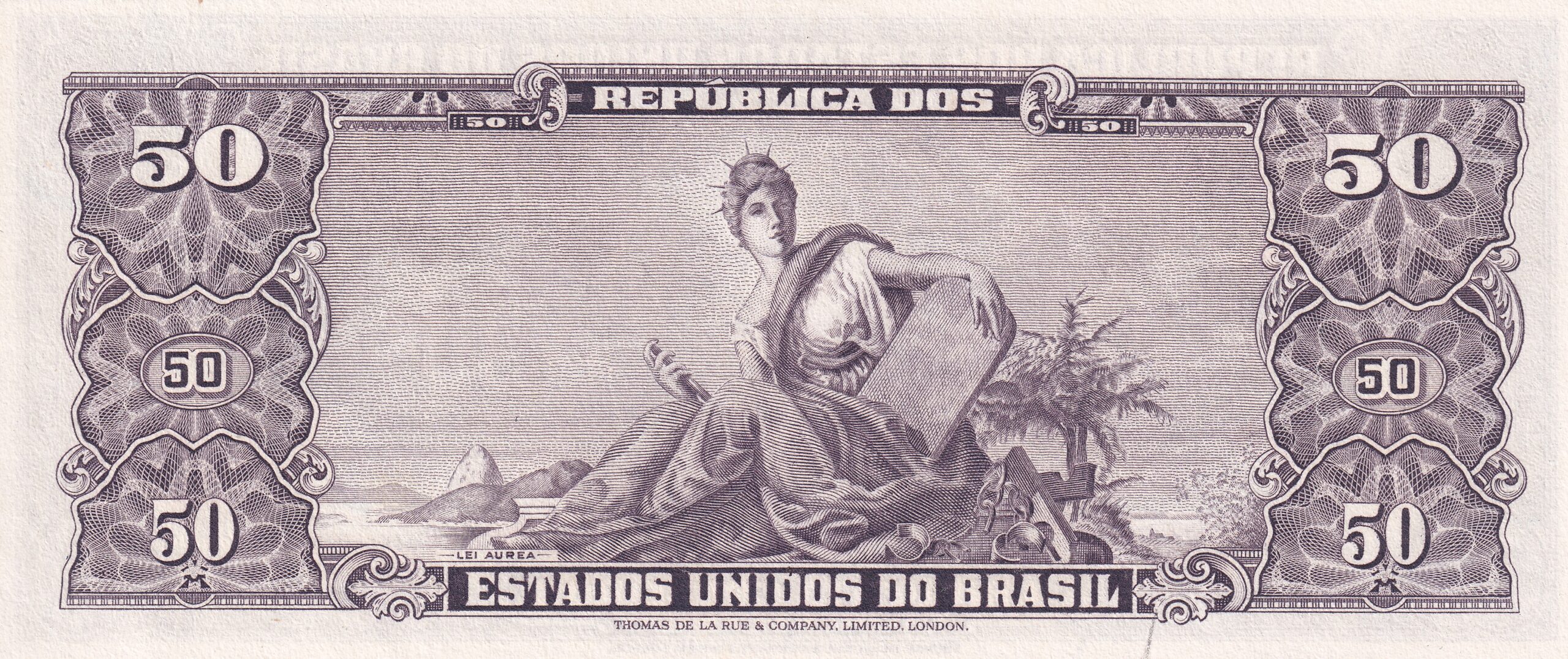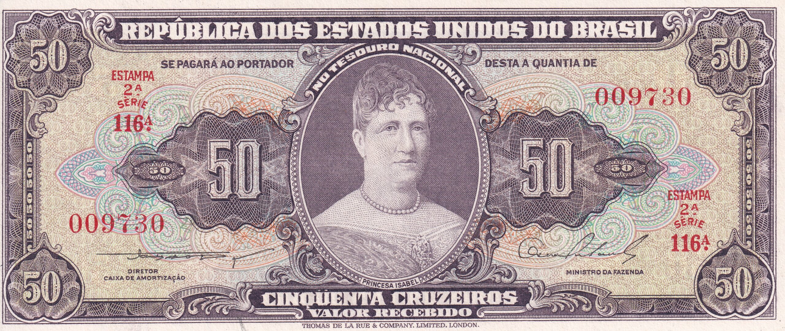 CÉDULA 50 CRUZEIROS 1954 – TESOURO NACIONAL – 2ª Estampa (TLR) – FE