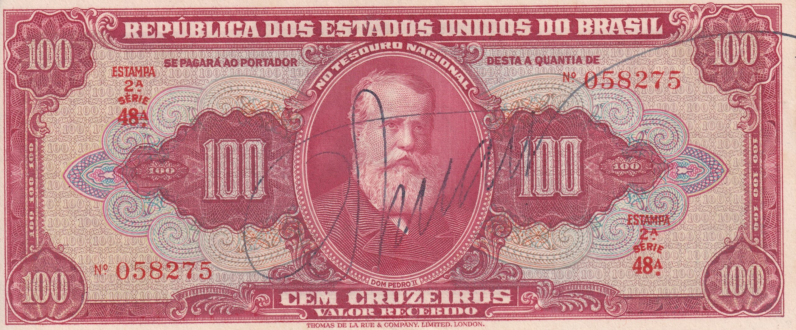 C094 – CÉDULA 100 CRUZEIROS 1949 – TESOURO NACIONAL – 2ª Estampa (TLR) – S/FE