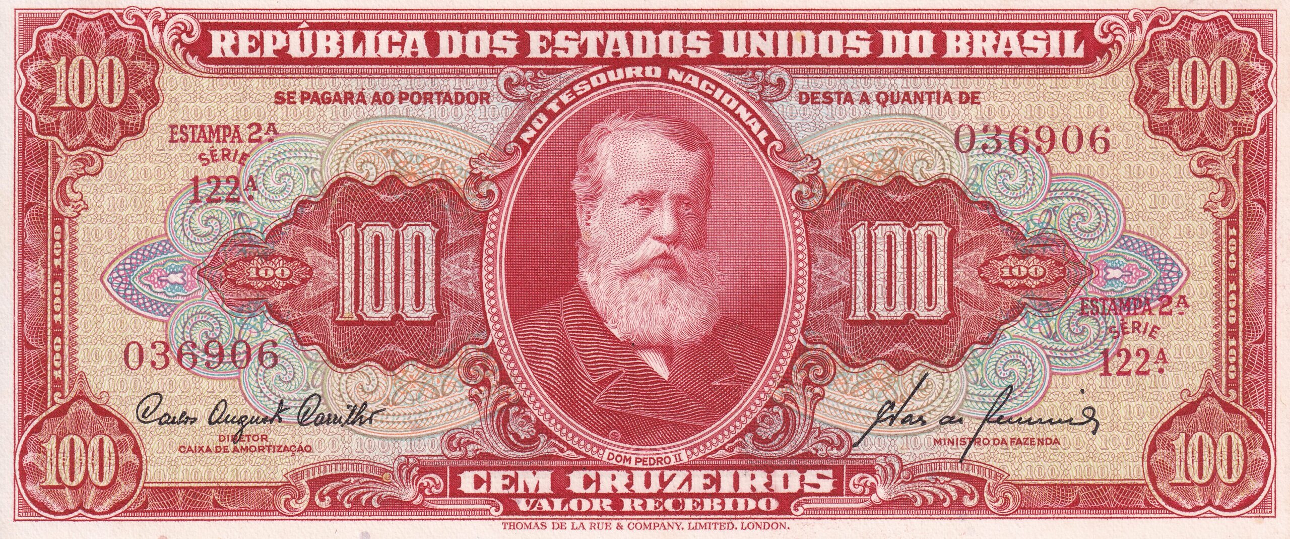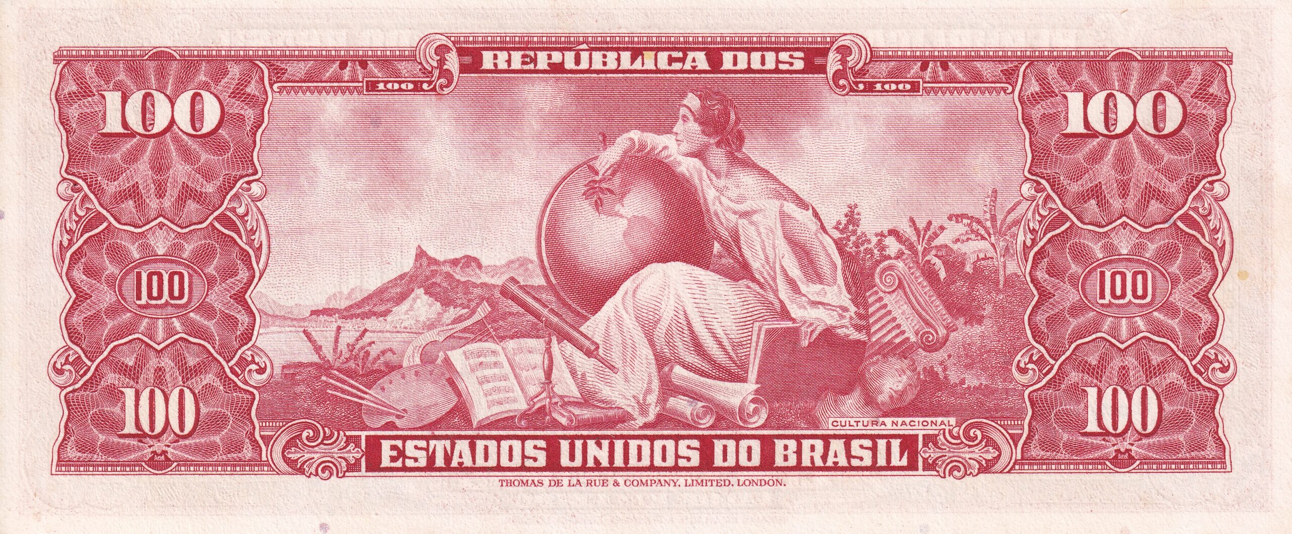 CÉDULA 100 CRUZEIROS 1960 – TESOURO NACIONAL – 2ª Estampa (TLR) – FE
