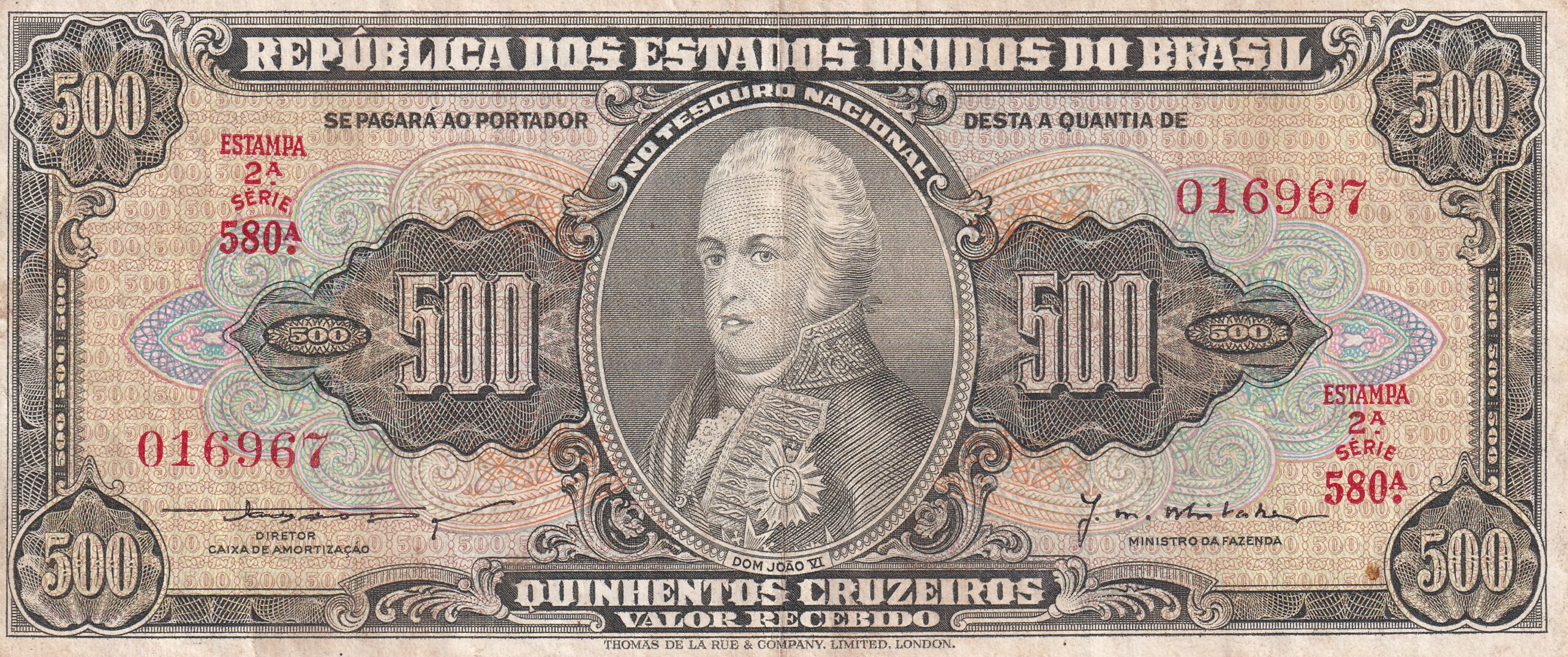CÉDULA 500 CRUZEIROS 1955 – TESOURO NACIONAL – 2ª Estampa (TLR) – MBC+