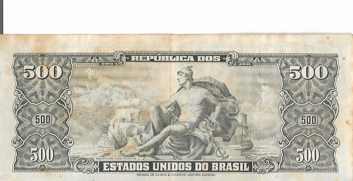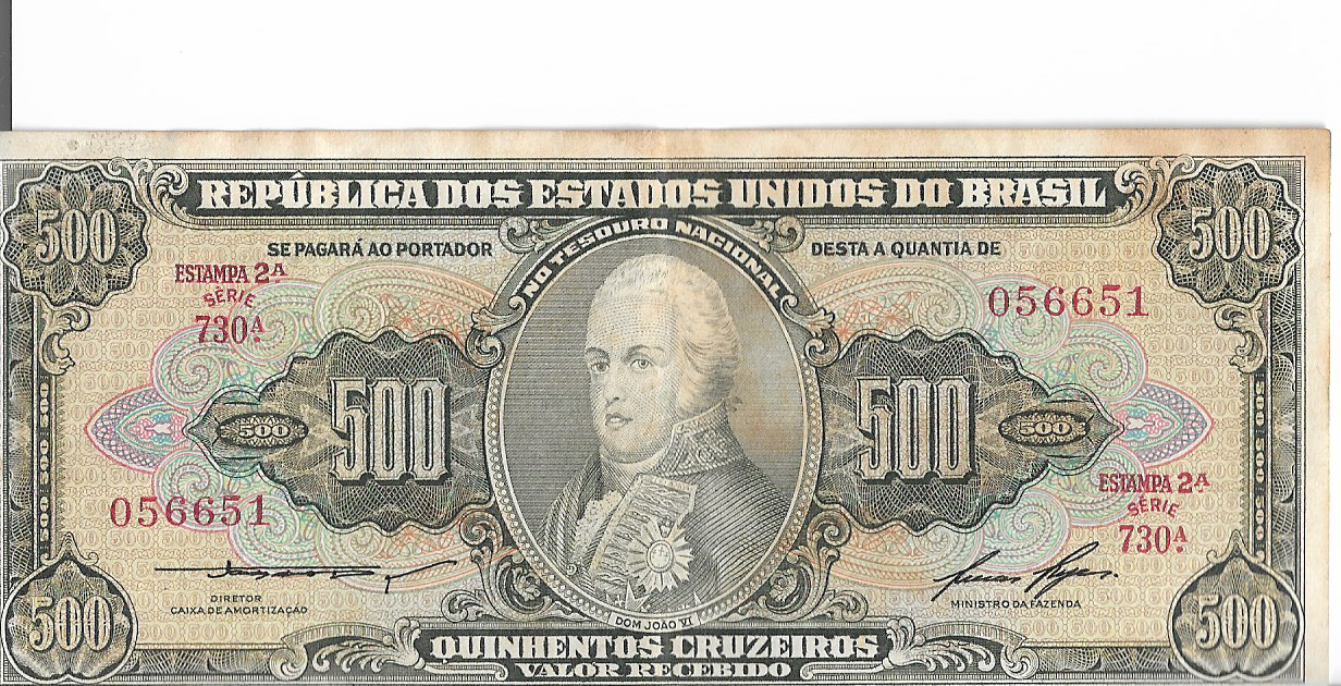CÉDULA 500 CRUZEIROS 1958 – TESOURO NACIONAL – 2ª Estampa (TLR) – Soberba