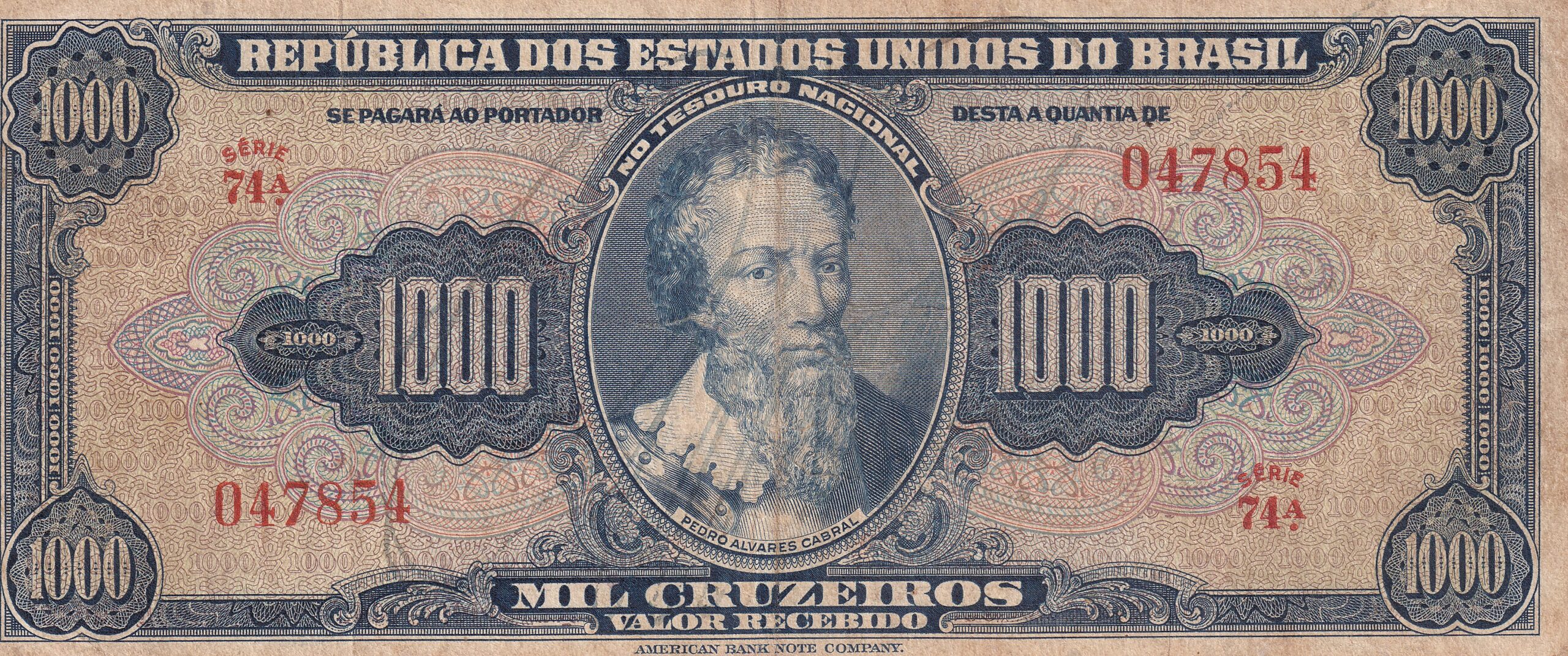 CÉDULA 1000 CRUZEIROS 1949 – TESOURO NACIONAL – 2ª Estampa (TLR) – MBC
