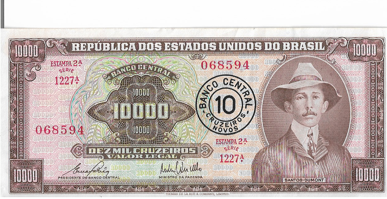 CÉDULA 10 CRUZEIROS NOVOS c/c em 10000 CRUZEIROS 1967 – BANCO CENTRAL DO BRASIL – 2ª Estampa (TLR) – FE