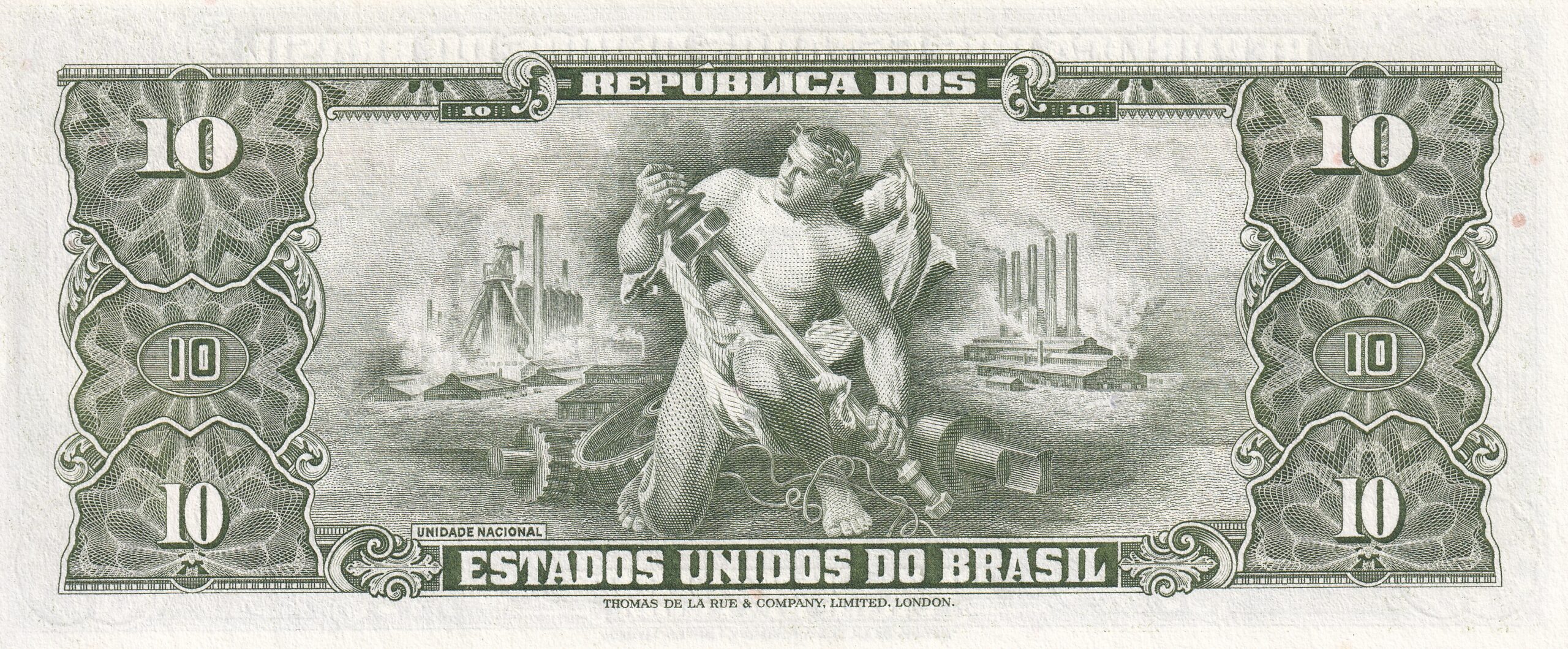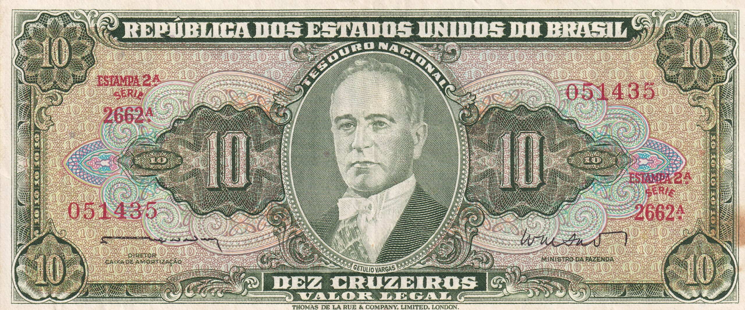 CÉDULA 10 CRUZEIROS 1962 – TESOURO NACIONAL – 2ª Estampa (TLR) – Soberba