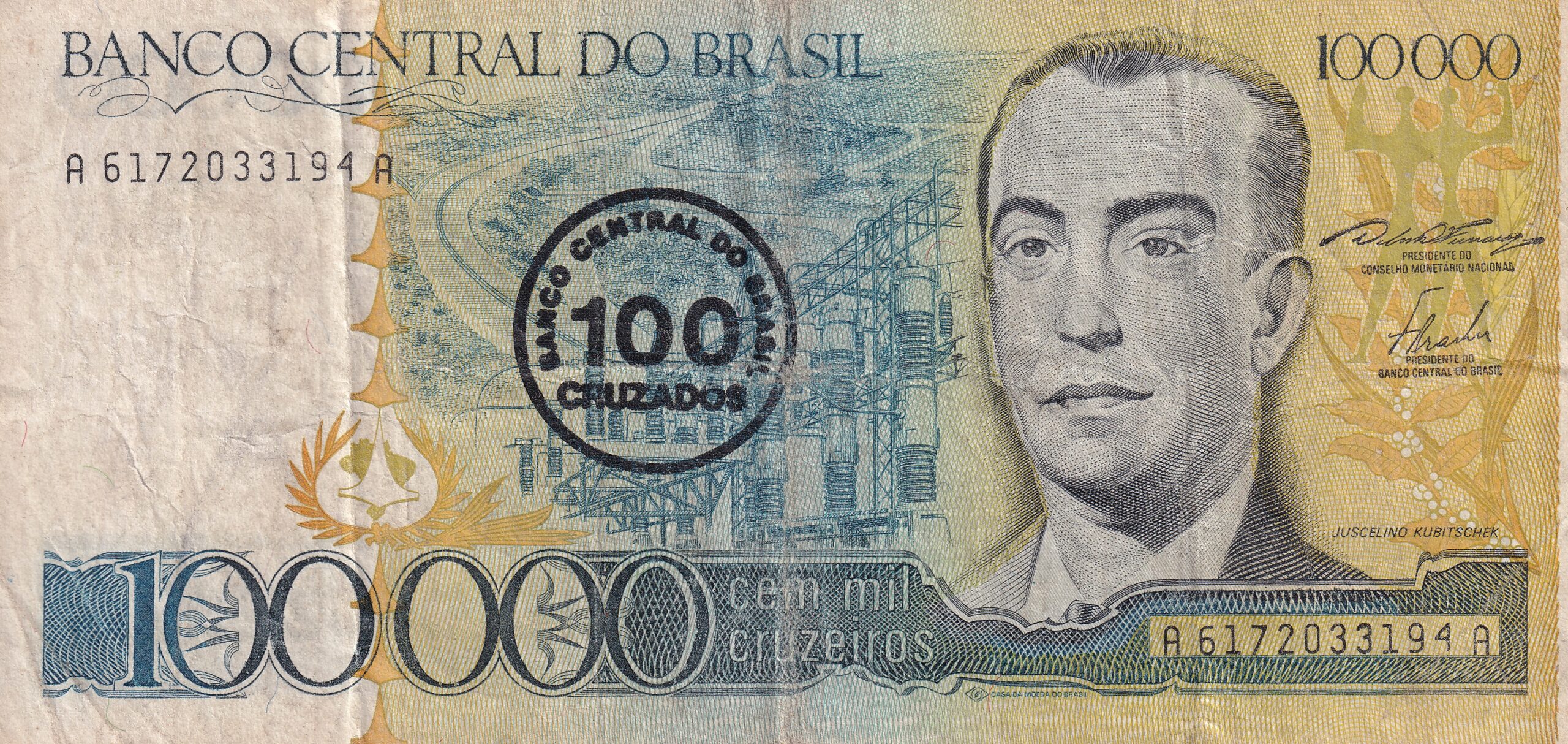 CÉDULA 100 CRUZADOS C/C EM 100.000 CRUZEIROS 1986 – BANCO CENTRAL DO BRASIL – CMB – MBC