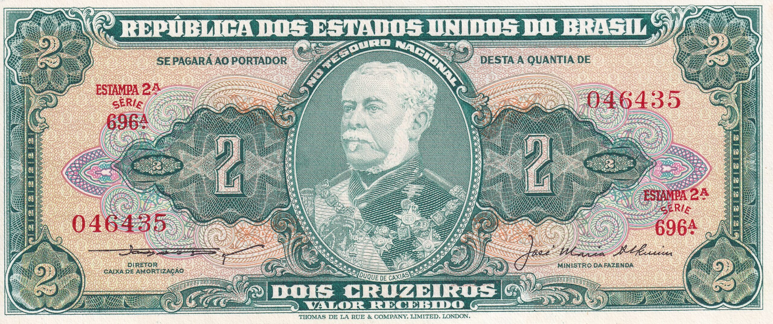 CÉDULA 2 CRUZEIROS 1956- TESOURO NACIONAL – 2ª Estampa (TLR) – FE
