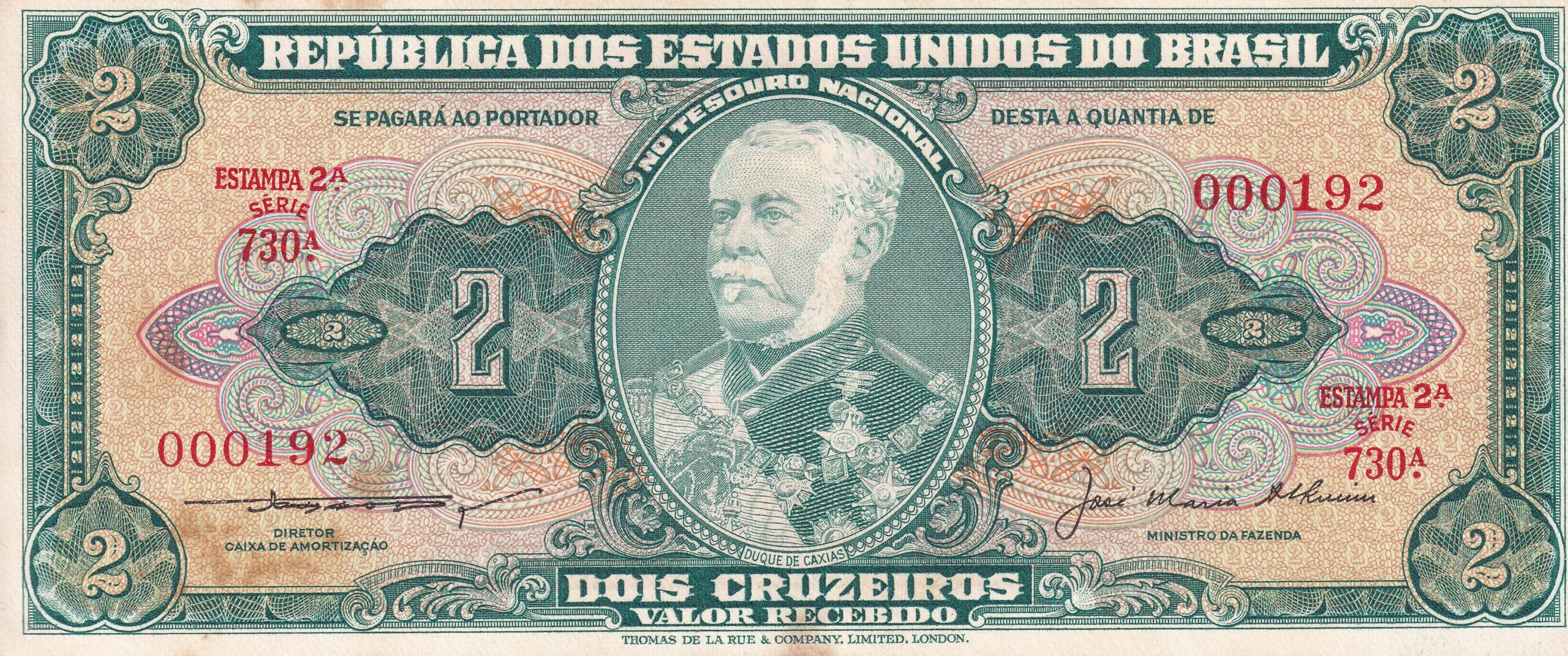 CÉDULA 2 CRUZEIROS 1956- TESOURO NACIONAL – 2ª Estampa (TLR) – Soberba