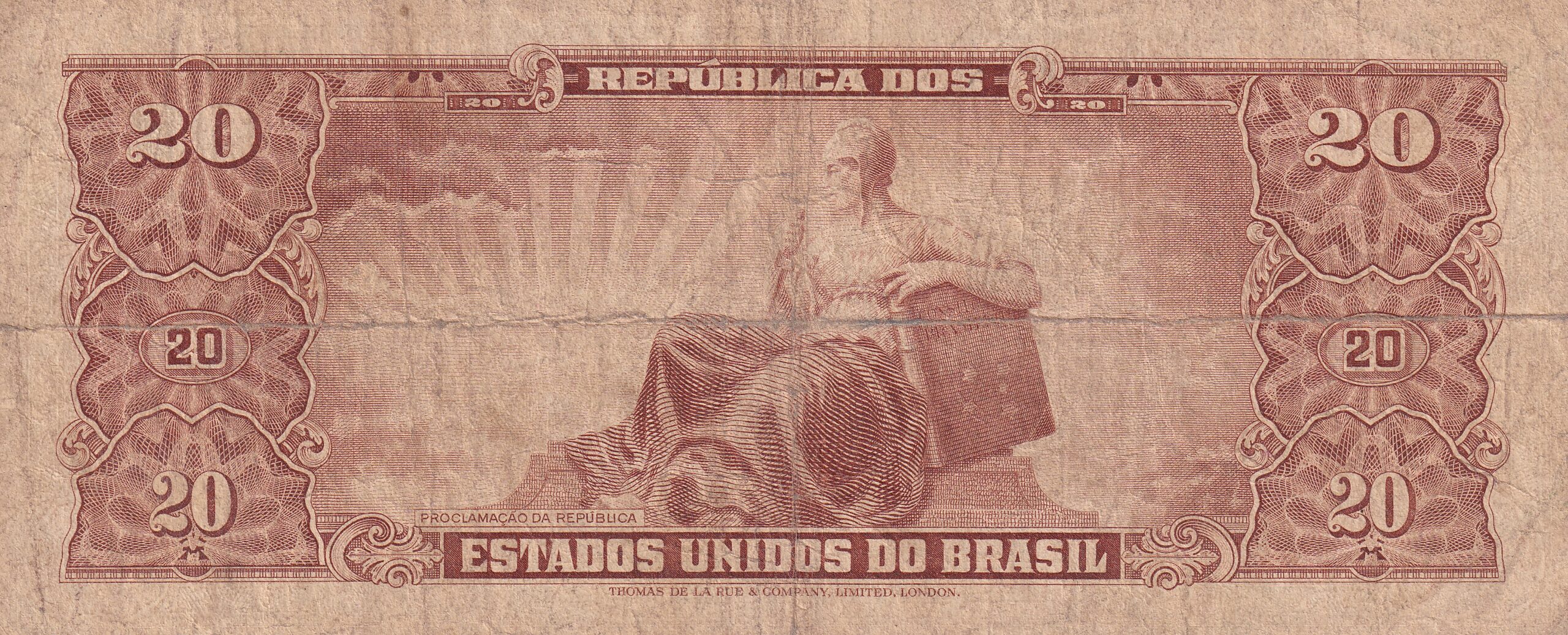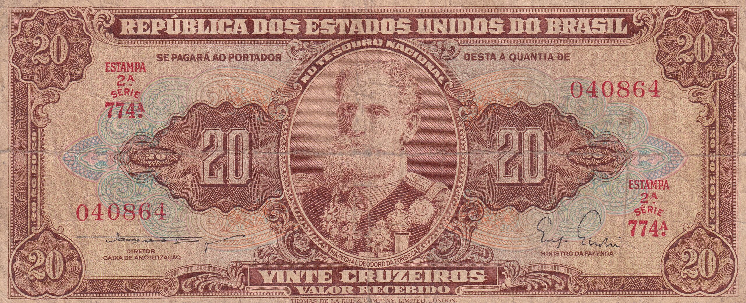 CÉDULA 20 CRUZEIROS 1962 – TESOURO NACIONAL – 2ª Estampa (TLR) – MBC