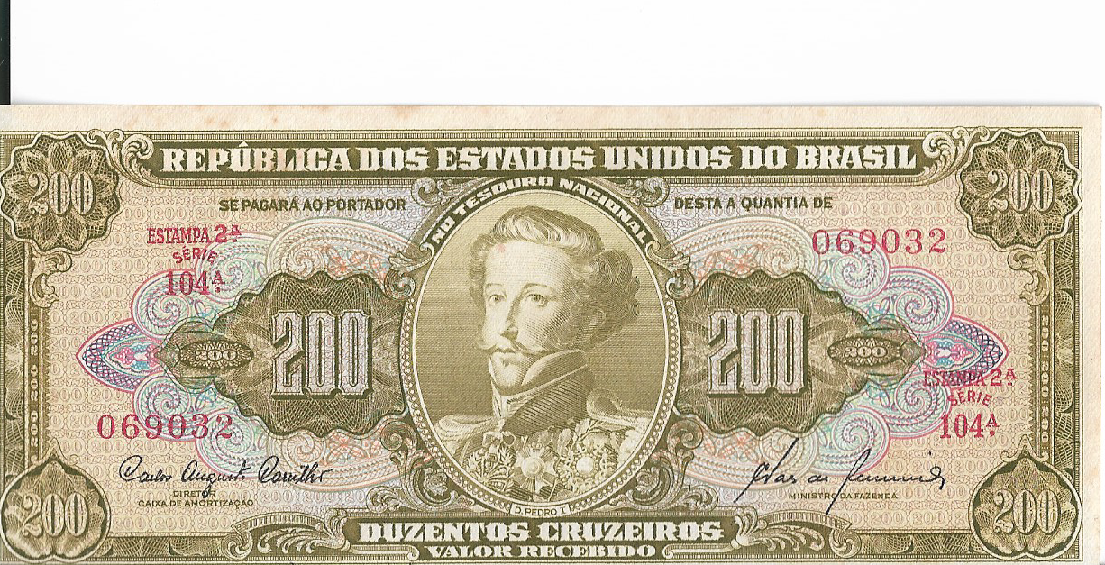 CÉDULA 200 CRUZEIROS 1960 – TESOURO NACIONAL – 2ª Estampa (TLR) – FE
