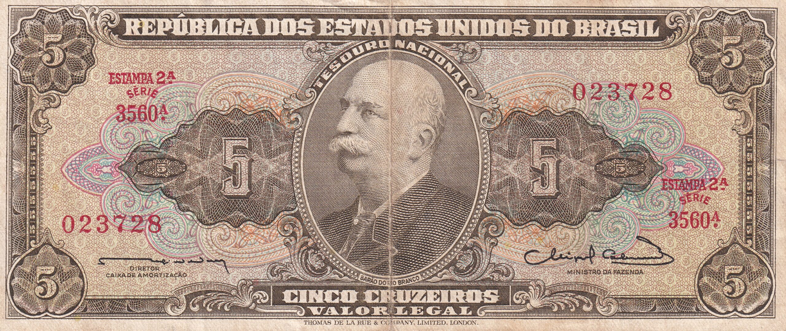 CÉDULA 5 CRUZEIROS 1963 – TESOURO NACIONAL – 2ª Estampa (TLR) – MBC