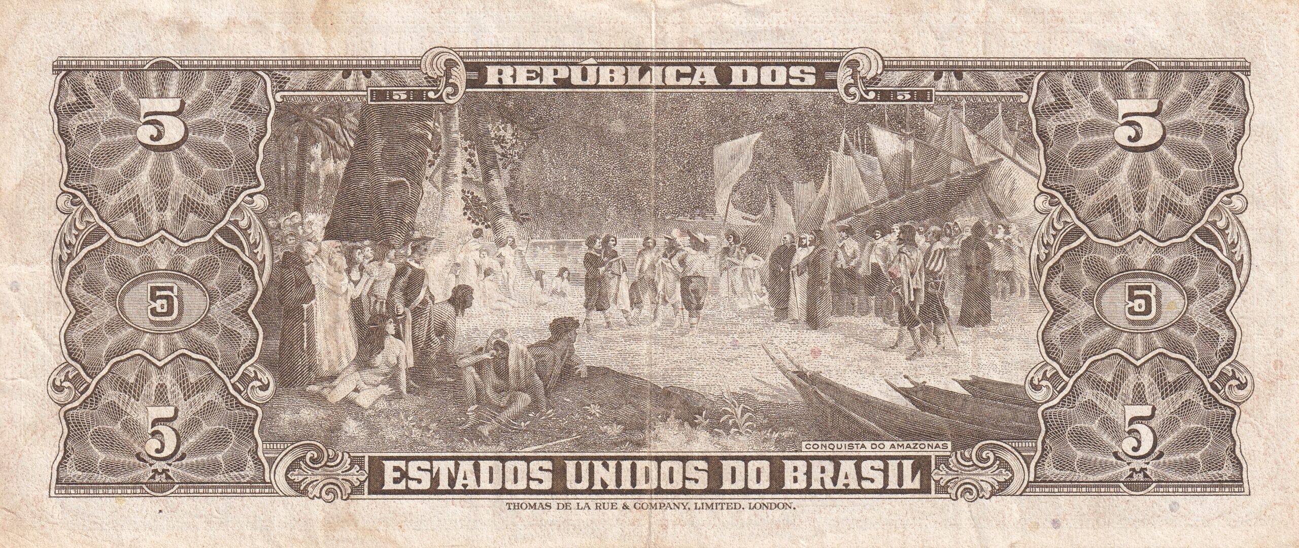 C 072 – CÉDULA 5 CRUZEIROS 1963 – TESOURO NACIONAL – 2ª Estampa (TLR) – MBC
