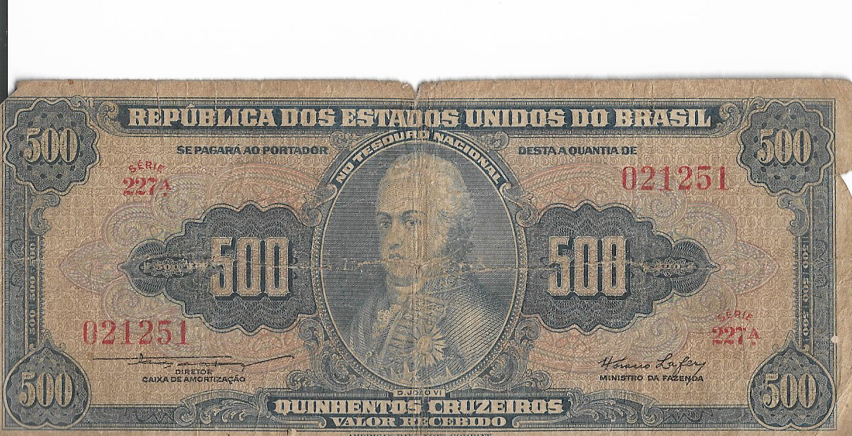 CÉDULA 500 CRUZEIROS 1961 – TESOURO NACIONAL – 1ª Estampa (ABN) – R