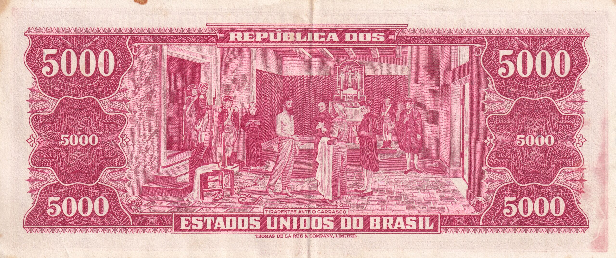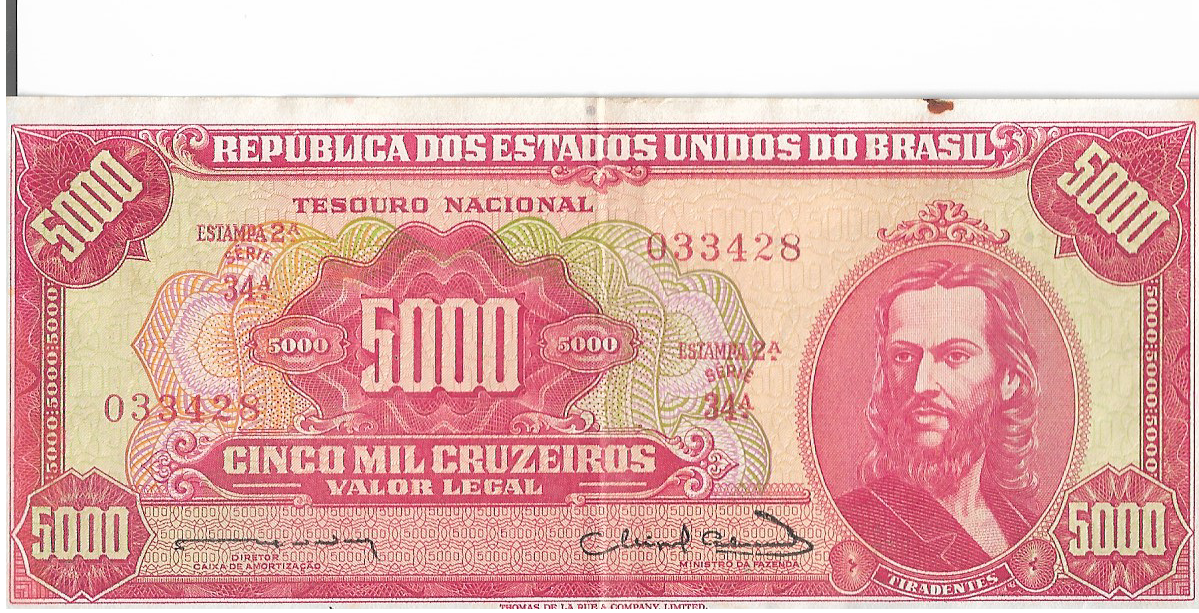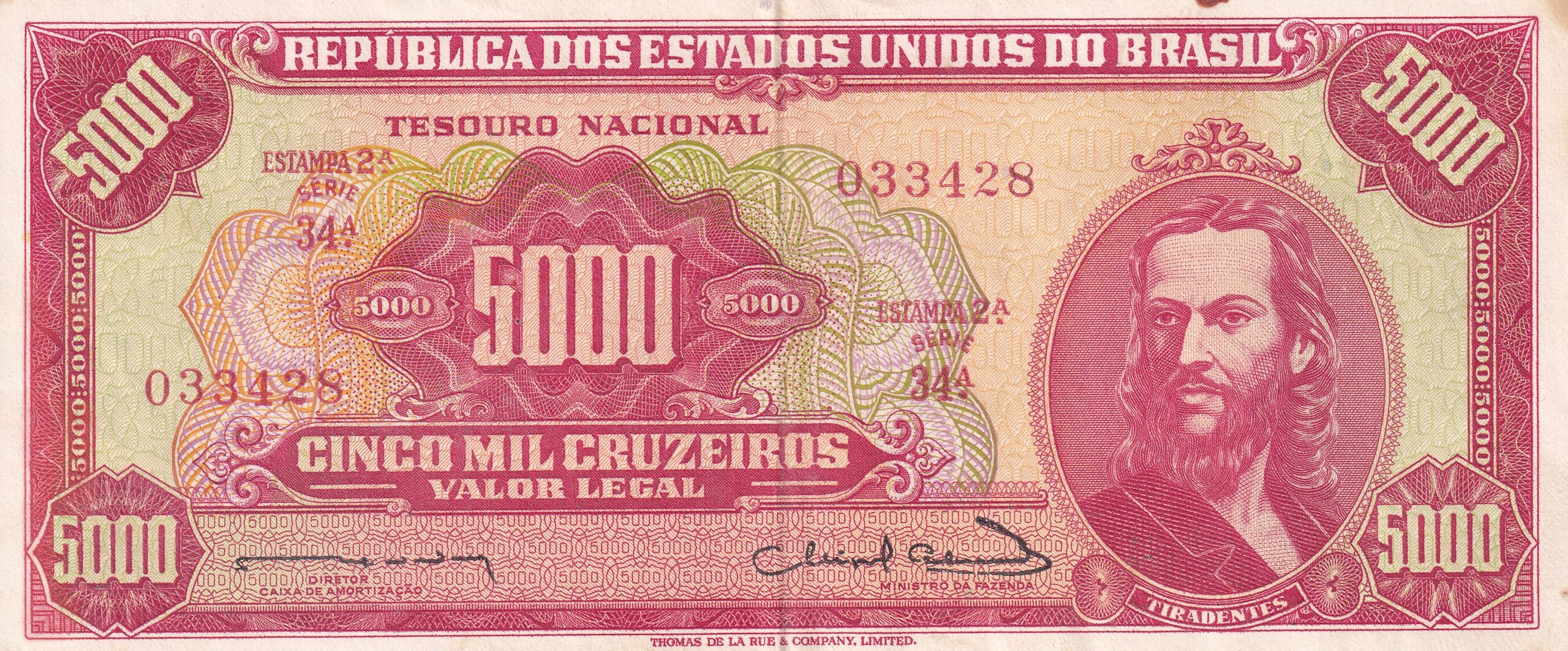 CÉDULA 5000 CRUZEIROS 1963 – TESOURO NACIONAL – 2ª Estampa (TLR) – Soberba