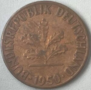 KM#105F – ALEMANHA 1 PFENNIG 1950 “letra F” SOBERBA