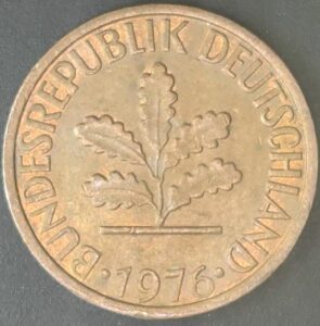 KM#105D – ALEMANHA 1 PFENNIG 1976 “letra D” MBC