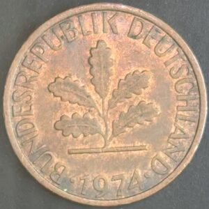 KM#105F – ALEMANHA 1 PFENNIG 1974 “letra F” MBC