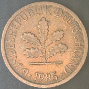 KM#105F – ALEMANHA 1 PFENNIG 1985 “letra F” MBC