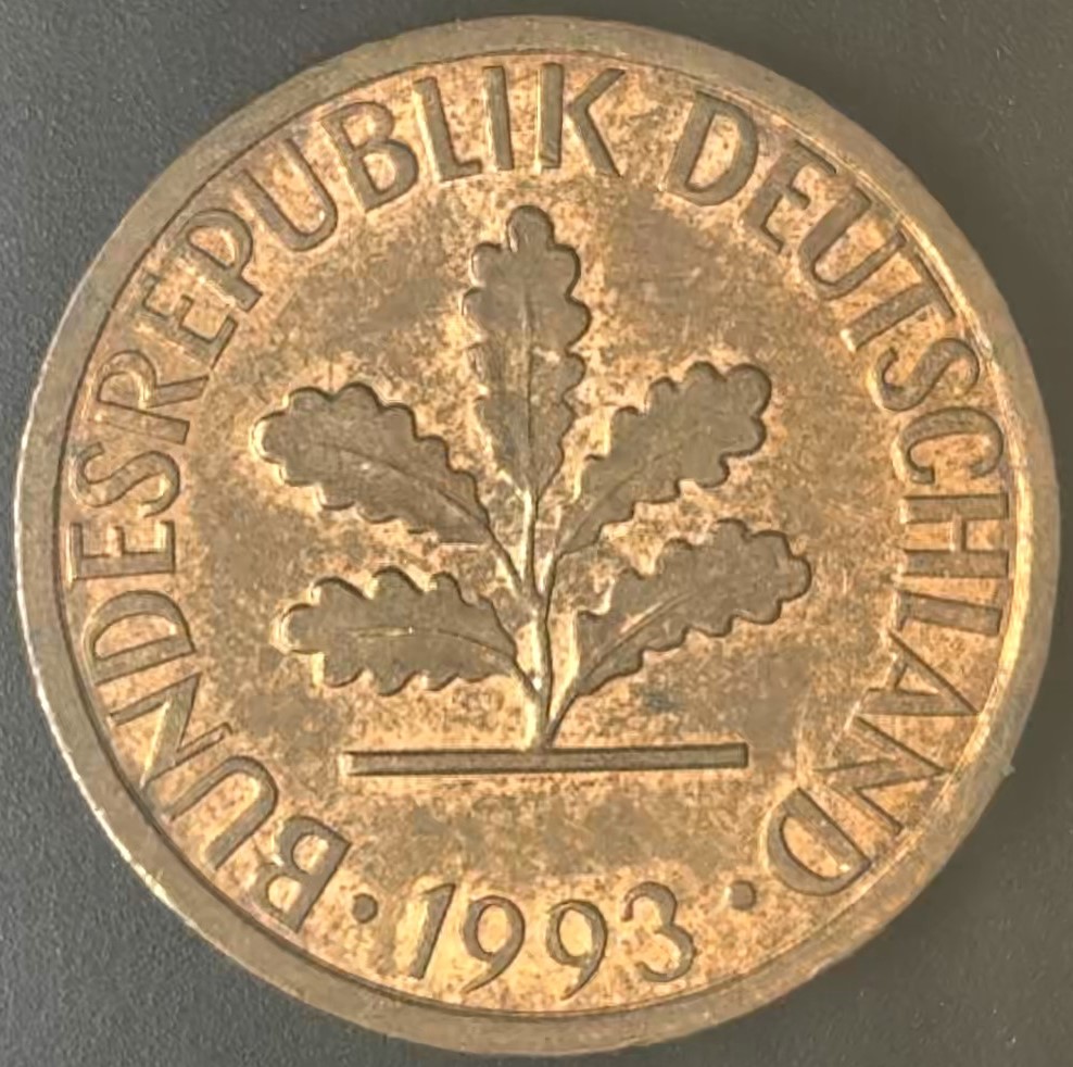 KM#105F – ALEMANHA 1 PFENNIG 1993 “letra F” MBC