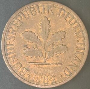 KM#105J – ALEMANHA 1 PFENNIG 1982 “letra J” MBC