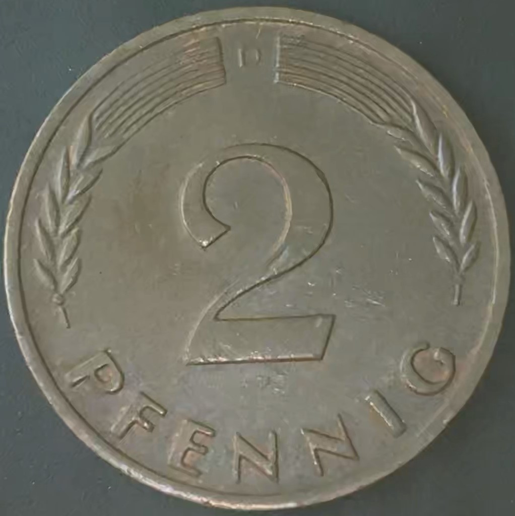KM#10 D – ALEMANHA 2 PFENNIG 1966 “letra D” MBC/S (BRONZE)
