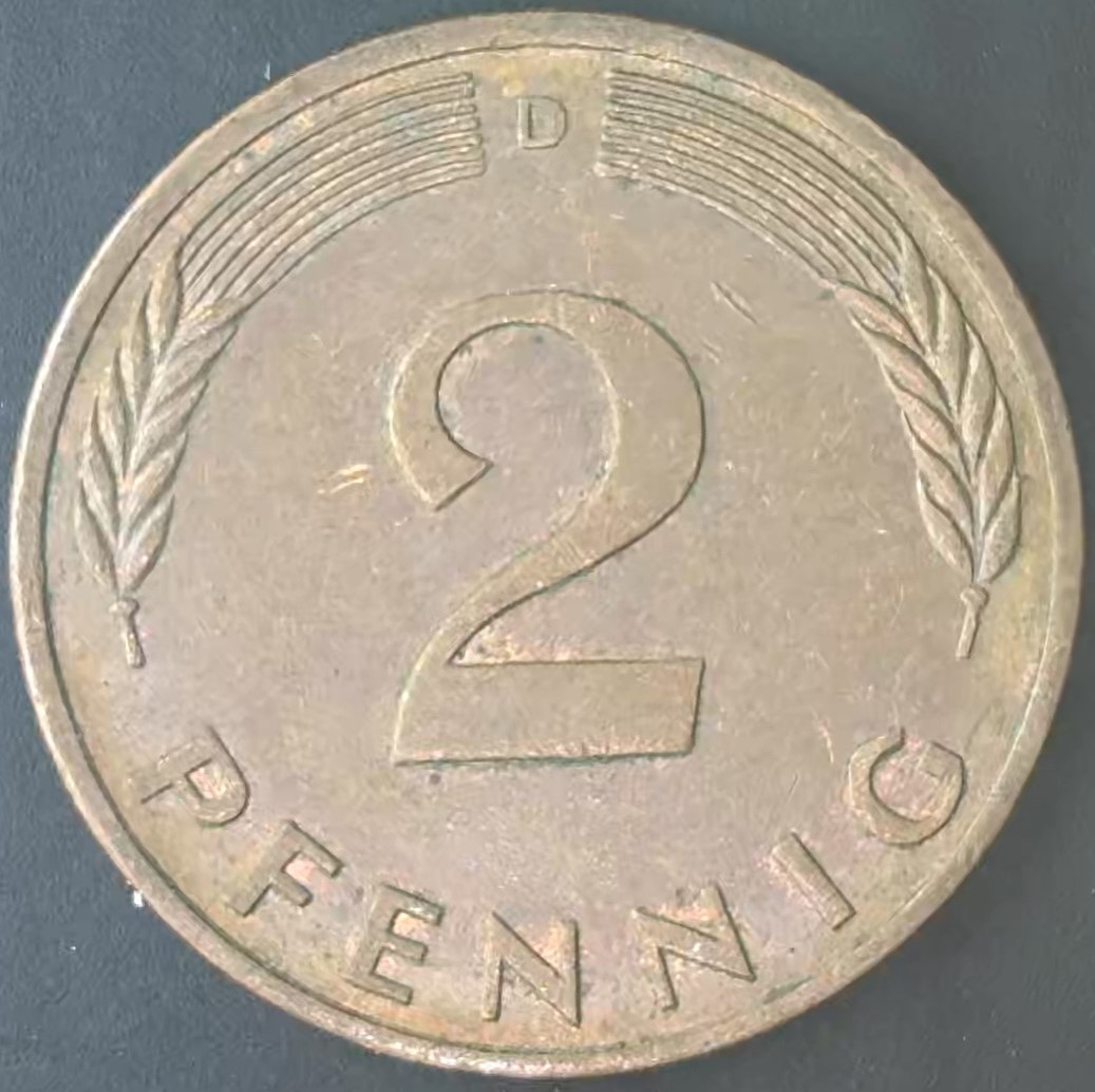 KM#106A D – ALEMANHA 2 PFENNIG 1984 “letra D” MBC