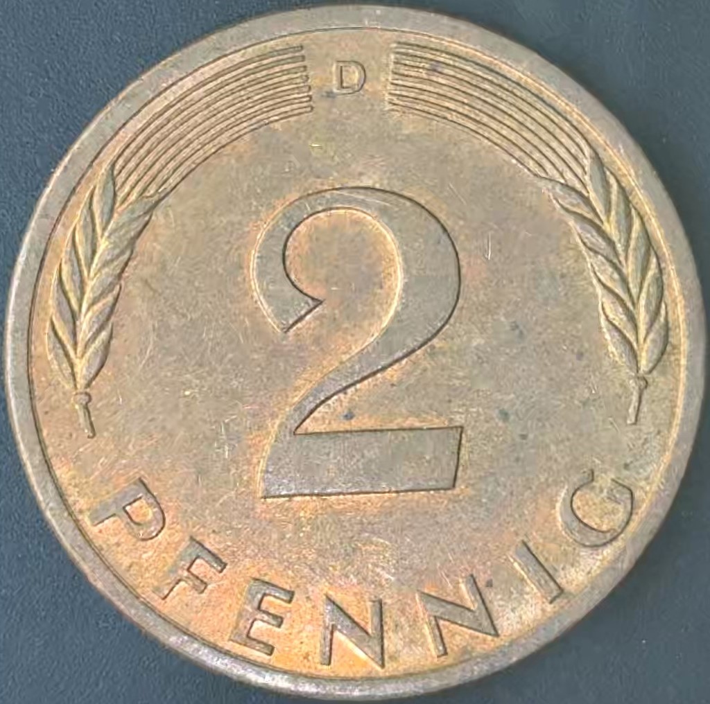 KM#106A D – ALEMANHA 2 PFENNIG 1994 “letra D” MBC