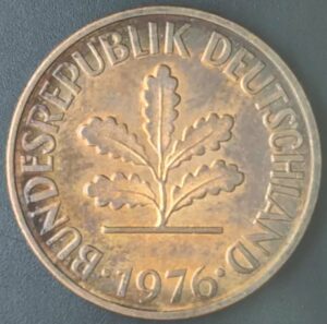 KM#106A F – ALEMANHA 2 PFENNIG 1976 “letra F” MBC