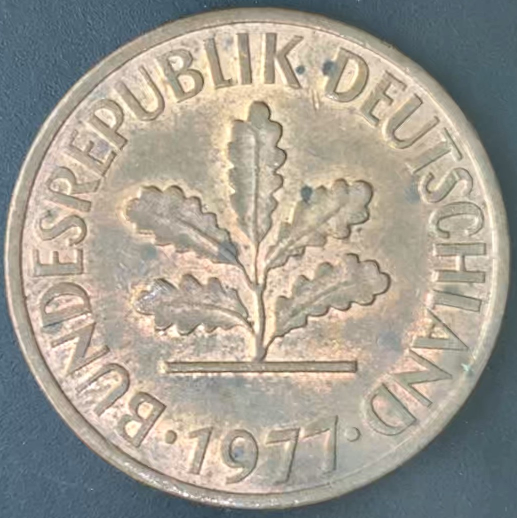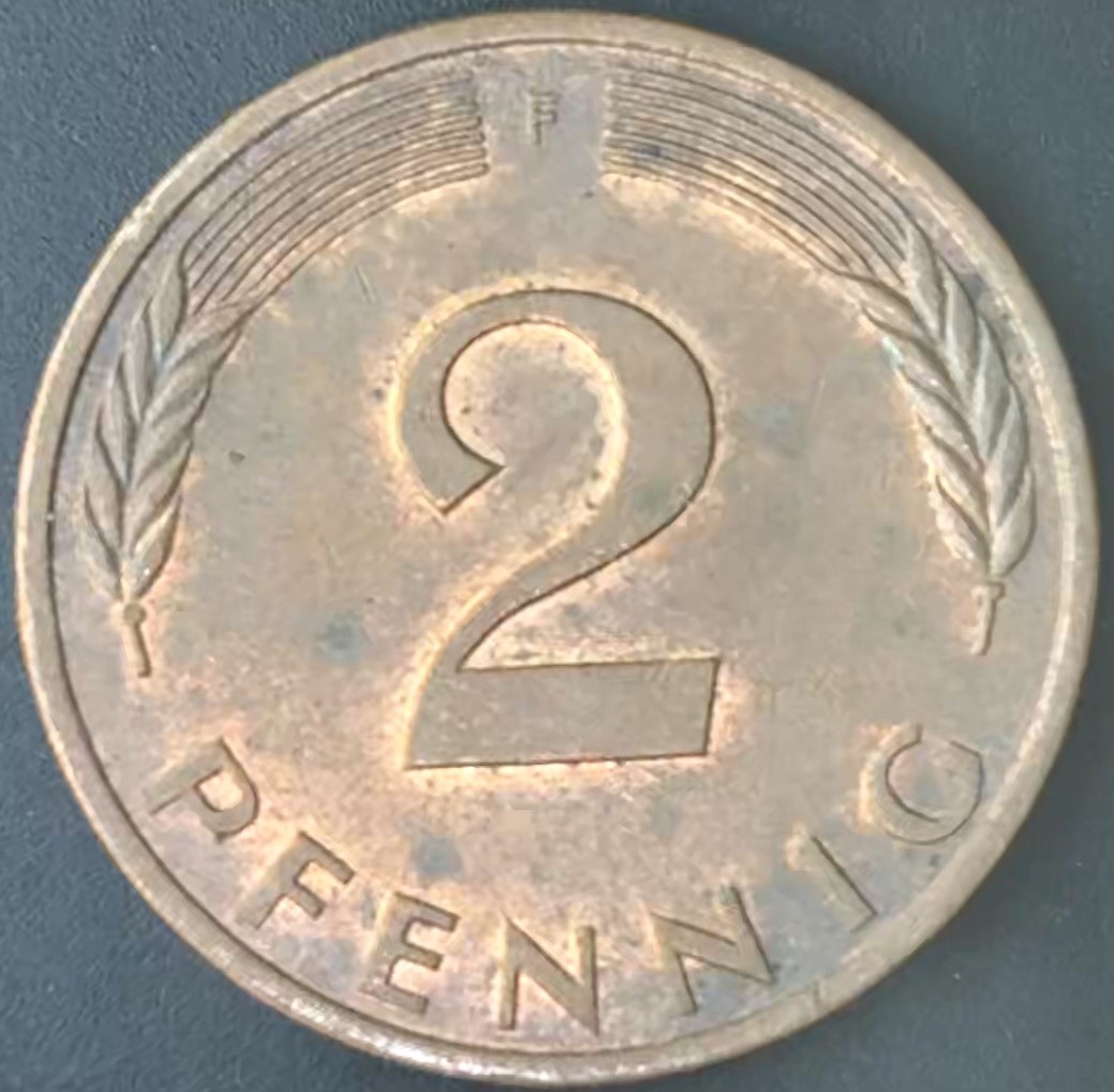 KM#106A F – ALEMANHA 2 PFENNIG 1977 “letra F” MBC