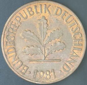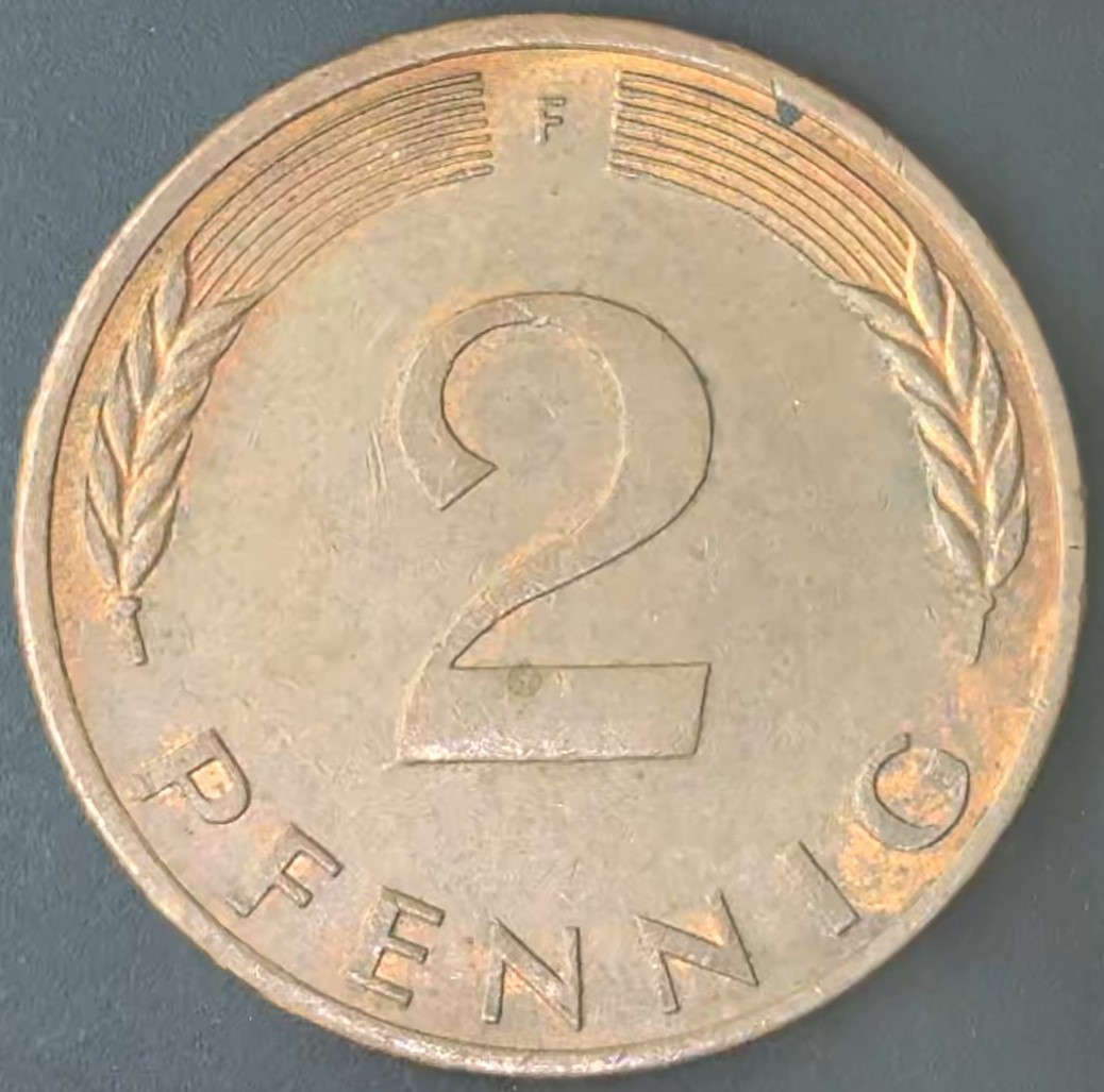 KM#106A F – ALEMANHA 2 PFENNIG 1981 “letra F” MBC